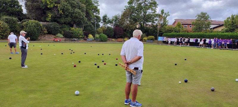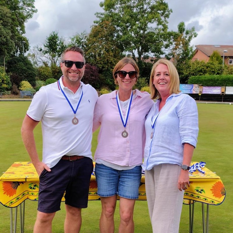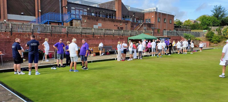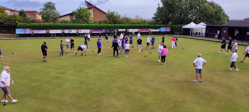 On a warm pleasant Sunday morning, with church bells ringing in the distance and a spitfire flying overhead, we commenced the day of bowls fun with a spider. All 30 contestants spread themselves around the edge of the green, eager to bowl a single wood at the jack in the centre. As the bell rang all 30 bowls were released at the same time heading to the centre of the green where one of the ladies from The Beauty Hand & Foot Spa picked up and settled on the jack, winning herself a box of chocolates.